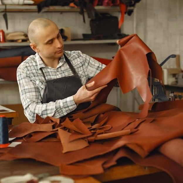Every hide is maximised. Marks and character remain in the leather. Off-cuts become patches, tags or small goods. Nothing unnecessary is discarded.